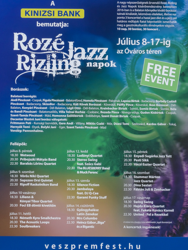 Idén július 8. és 17. között rendezik meg a Rozé, Rizling és Jazz Napokat az Óváros téren.
