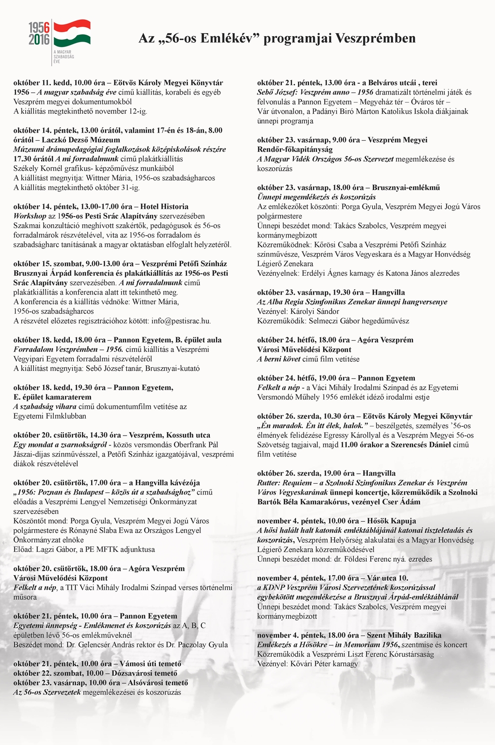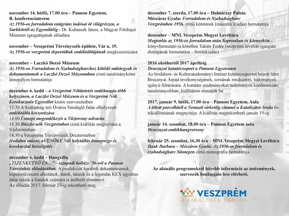 Az 1956-os forradalom és szabadságharc 60 éves évfordulóját kiemelt ünnepként kezeli Magyarország és ezzel együtt Veszprém is.