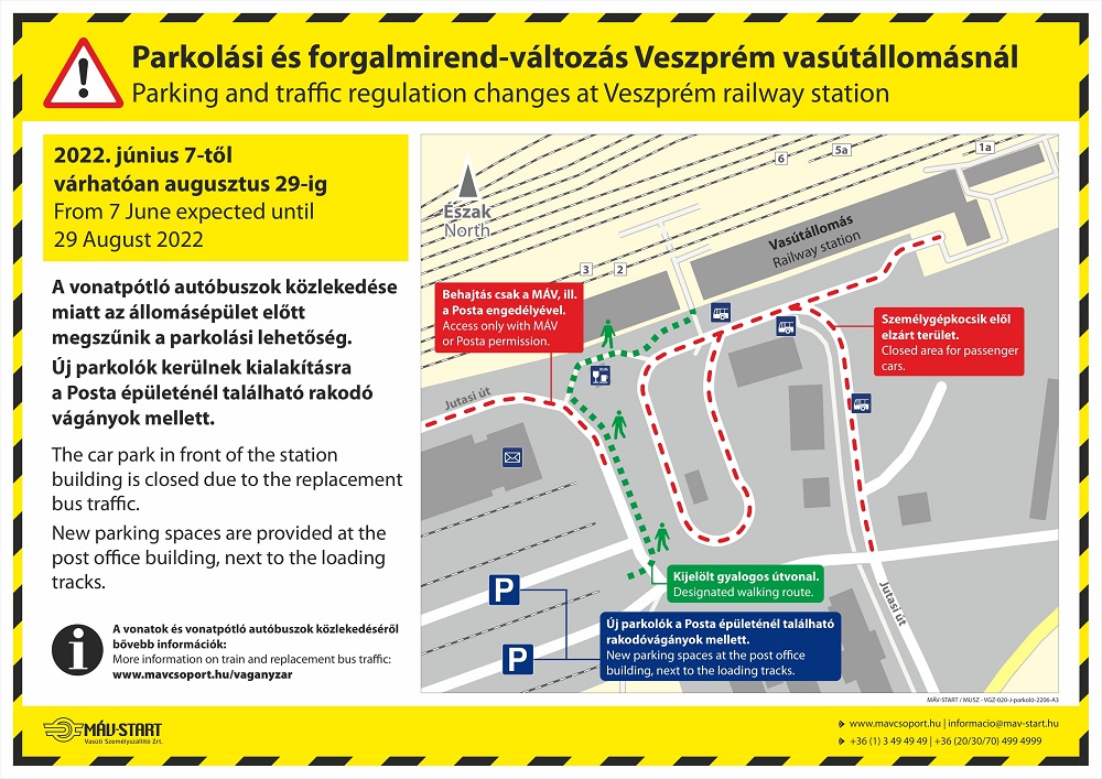 A vonatpótló buszok közlekedése miatt az állomásépület előtt megszűnik a parkolási lehetőség június 7. és augusztus 29. között, azonban új parkolókat alakítanak ki a posta épület melletti rakodó vágányok mellett.
