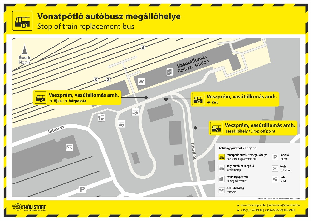 Lezárják a Veszprém Zirc közötti vasútvonalat is, ahol szintén vonatpótló buszokkal oldják meg a közelekedést.