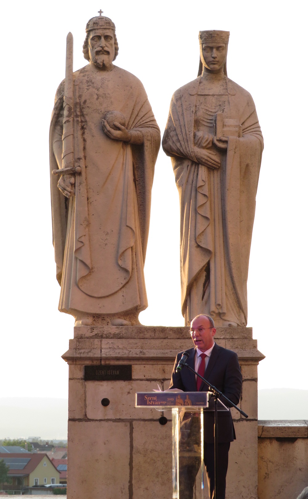 Hála az előttünk járóknak, magyarként nagyszerű múltra, hősökre és példaképekre tekinthetünk vissza, ami megsokszorozza felelősségünket is, hiszen nem adhatunk át rosszabb örökséget az utánunk jövőnknek, mint amilyet mi kézhez kaptunk. Ez a cél lebeg előttünk, ennek a kihívásnak kell megfelelnünk, ezért dolgozunk. Most éppen Európa kulturális városai közé akarunk tartozni, méltóan Szent István és Gizella teljesítményéhez. Majd Európa kulturális fővárosai között kívánunk maradni, hogy ükunokáink is büszkén emlegessenek minket. Ha összefogunk, egy irányba húzunk, nekünk, veszprémieknek sikerülni fog - zárta ünnepi beszédét Porga Gyula.