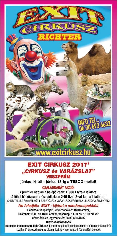 Veszprémbe érkezik az Exit Cirkusz 2017-es műsora. NYEREMÉNYJÁTÉKOT hirdetünk!