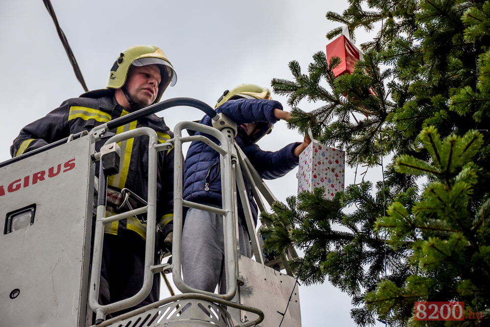 A diákok minden évben örömmel érkeznek a laktanyába, és büszkén mutatják a saját kezűleg készített karácsonyfadíszeket, melyekkel a veszprémi tűzoltóság előtt álló fenyőt öltöztetik ünnepi díszbe. Ez alkalommal is minden apró kézre szükség volt, hiszen a cseppnyi fenyő az évek alatt hatalmas fává növekedett. A gyermekek számára jó móka volt azon versenyezni, ki tudja magasabbra aggatni a szaloncukrot, vagy épp a kis ajándékdobozkákat.