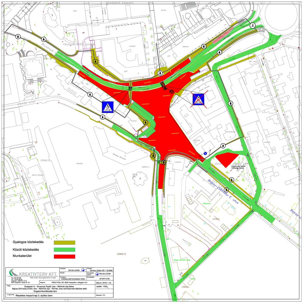 Lezárják a Brusznyai utca – Mindszenty József utca és a Mártírok útja - Kórház utca közötti szakaszt, a munkaterület kiterjedése a két útszakasz közötti közlekedési felületet teljes mértékben elfoglalja. A Bajcsy-Zsilinszky utca illetve a Mártírok útja végét is lezárják. A Brusznyai – Mintszenty utca forgalmi iránya csak az egyesen történő közlekedést biztosítja, a Mártírok útjára történő kihajtás azonban nem lesz lehetséges.