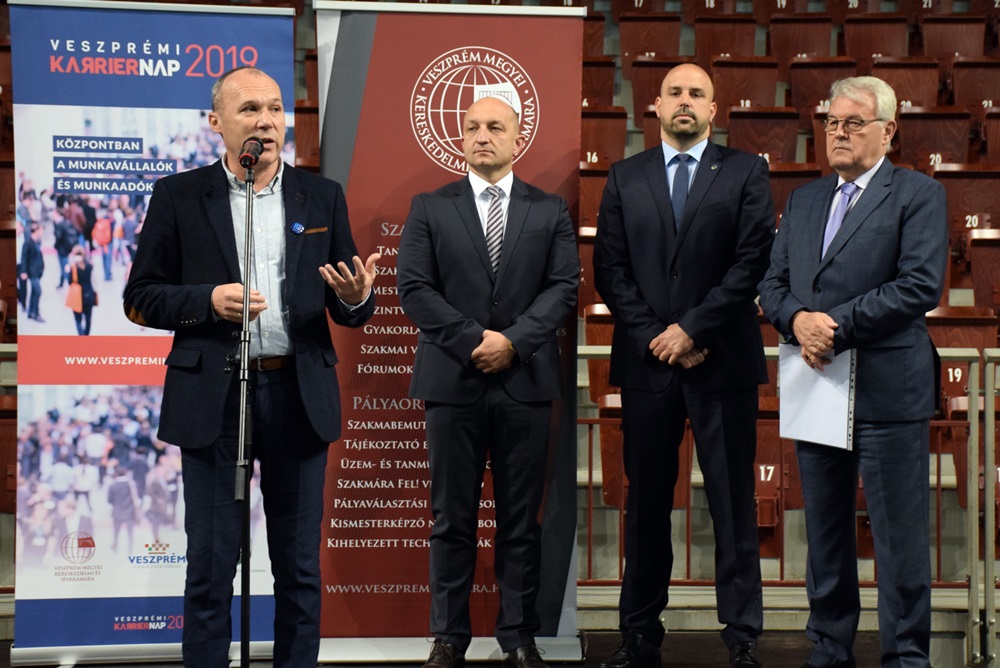 Markovszky György, a Veszprém Megyei Kereskedelmi és Iparkamara elnöke rámutatott, a mai gyorsan változó világban érdemes minél szélesebb körben tájékozódni a munkalehetőségekről. Megemlítette még, Veszprém megye munkaképes lakosságának 40 százaléka nem a megyében dolgozik, ezen is javítani szerettek volna a Karriernap megszervezésével.