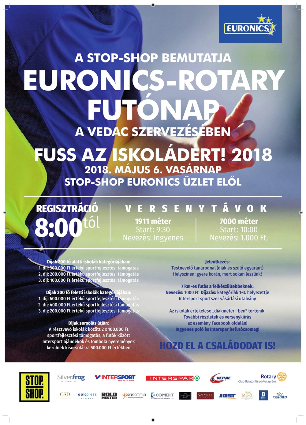 Az Euronics-Rotary futónapot május 6-án, vasárnap rendezi meg a Veszprémi Egyetemi és Diák Atlétikai Club (VEDAC).