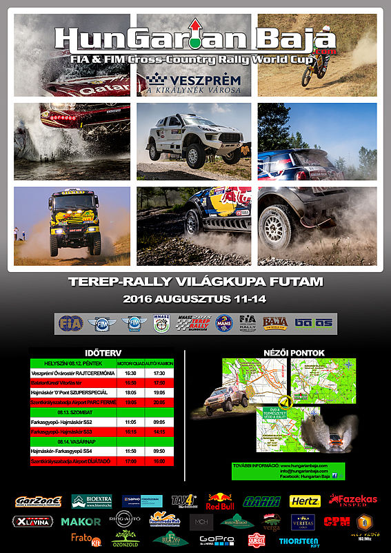 Az ünnepélyes rajtceremóniát az Óváros téren tarják augusztus 12-én, pénteken 16 órától, amely után a mezőny megmutatja magát balatonfüreden, balatonalmádiban és Balatonfűzfőn is, hogy utána visszatérjenek a hajmáskéri nullpontra, ahol teljesítik a 11 kilométeres szuperspeciális versenyt, a hétvégén pedig a terepralisok szombaton kétszer, vasárnap egyszer haladnak végig a 148 kilométeres pályán. A nézőket a Hajmáskéren várják, valamint a döbröntei patakátkelésénél. A szervizparkot a szentkirályszabadjai reptéren alakítják ki - ismertette Garamvölgyi Zoltán főszervező.