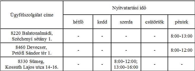 Veszprém megyében újabb három kormányablakban nyílik NAV ügyfélszolgálat. 2018. január 3-tól Sümegen, míg január 5-től Balatonalmádiban és Devecserben is lehetősége lesz a megyében élőknek, hogy heti egy nyitvatartási napon a Kormányhivatal kormányablakaiban intézzék adóügyeiket - tájékoztatott a Veszprém Megyei Adó- és Vámigazgatóság.