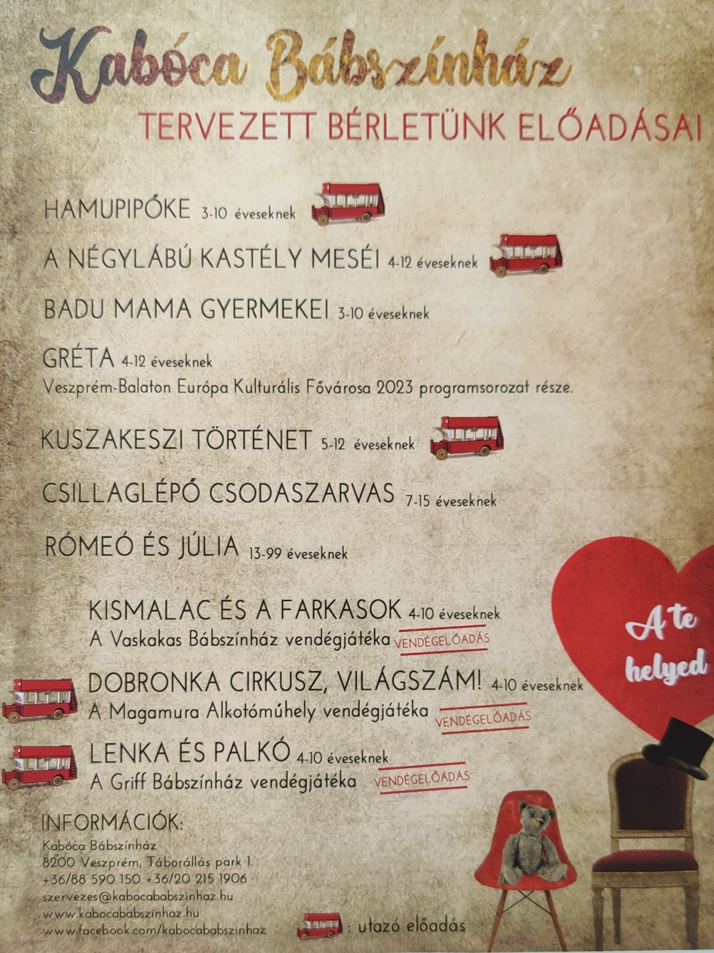 Hat bemutatója lesz a veszprémi Kabóca Bábszínháznak a jövő évadban