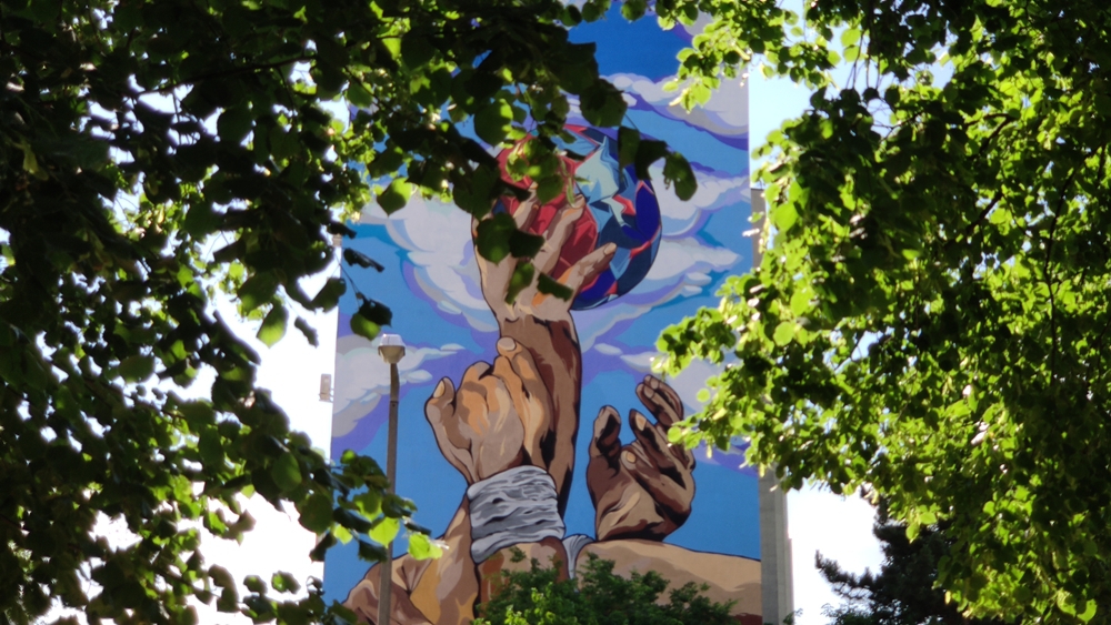 A Halle utca 5. szám alatti lakótömb keleti tűzfalára készült murál falfestés az elmúlt hetekben.