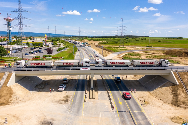 Az Almádi úti csomópontban a híd statikus és dinamikus próbaterhelését négy teherautóval végezték el.