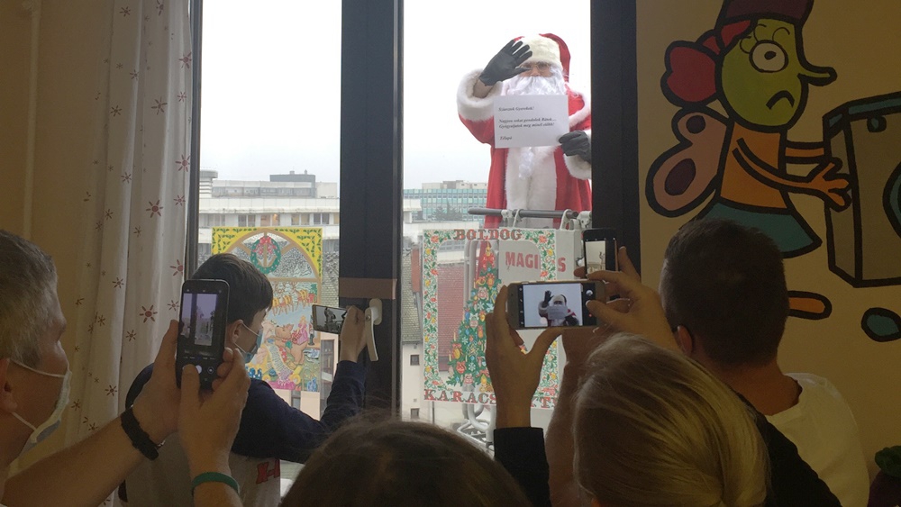 Megjelent a Mikulás a kórház gyemrekosztályának ablakában