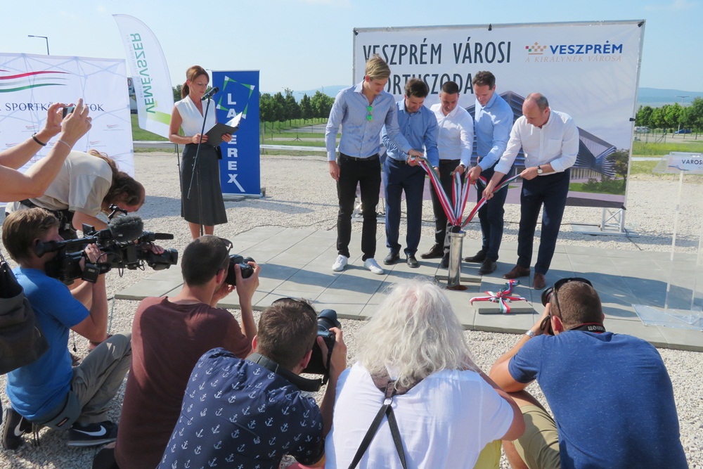 Elhelyezték a Veszprém Városi Sportuszoda alapkövét és időkapszuláját pénteken délután. Másfél év múlva csobbanhatunk az új létesítményben.