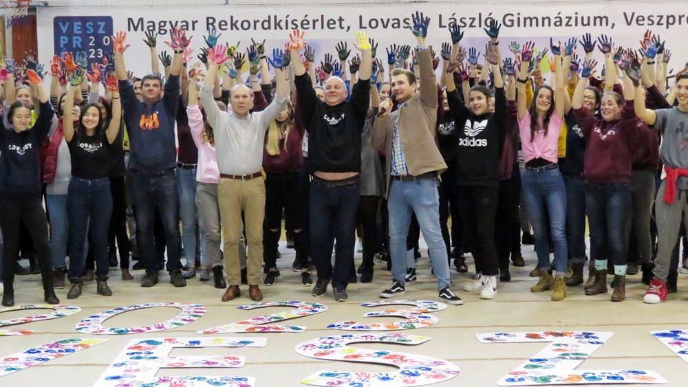 "A legtöbb személy által egyszerre, egy időben adott tenyérlenyomat magyar rekordját" sikerült megdönteni a Lovassy László Gimnáziumban szombaton.