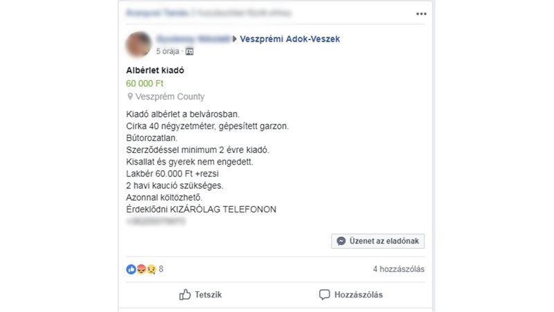 Parázs vita alakult ki a napokban egy veszprémi adok-veszek csoportban a Facebookon egy albérleti hirdetés kapcsán.