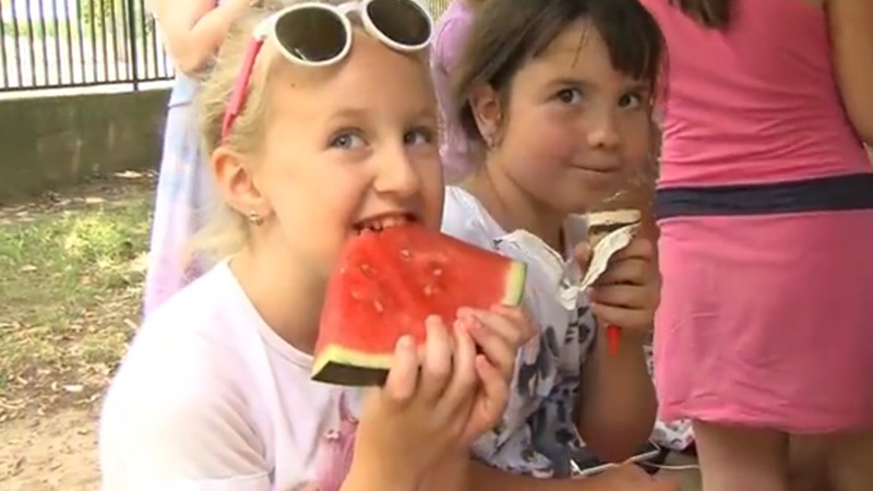 Gyümölcsöket és jégkrémet kaptak ajándékba a veszprémi nyári napközis tábor résztvevői a város alpolgármesterétől szerdán.