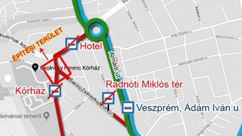 Forgalmirend-változás lép életbe Veszprém belvárosában a körforgalmi csomópont építése miatt. Ez jelentősen érinti a buszforgalmat is.