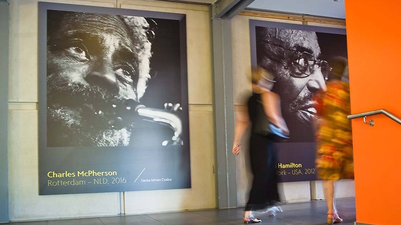 15 nagyméretű, két és félszer két méteres tablón olyan világhírű jazzművészek portréi láthatók, mint például Charles Lloyd vagy Quincy Jones.