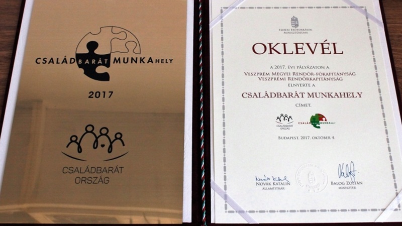 A Veszprémi Rendőrkapitányság 2017-ben ismételten elnyerte a „Családbarát munkahely” címet, melyet egy évig jogosult viselni.