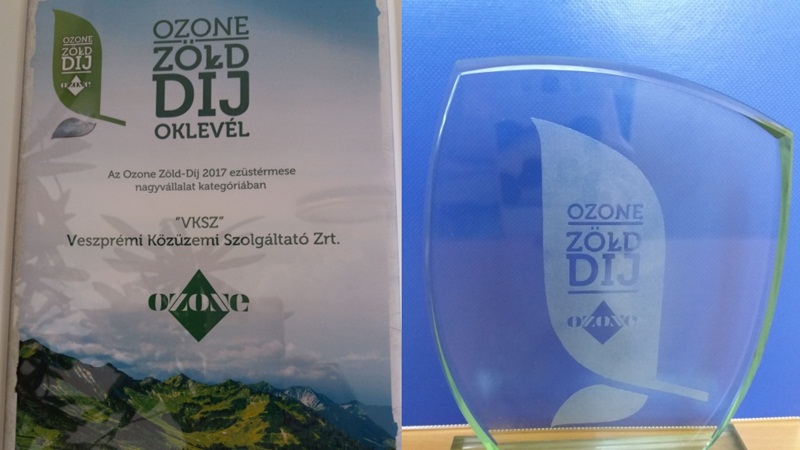 Az Ozone Zöld-Díj 2017 ezüstérmese nagyvállalati kategóriában a „VKSZ” Veszprémi Közüzemi Szolgáltató Zrt.