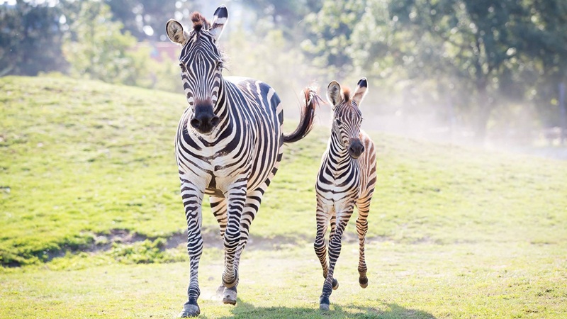 Az ifjú zebra csődör még anyja mellett érzi igazán komfortosan magát, serényen követi mindenhova a Veszprémi Állatkertben.