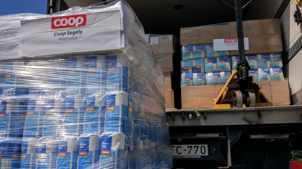 1,5 millió tonna súlyú élelmiszeradománnyal érkezett Veszprémbe a Coop Segély kamionja.