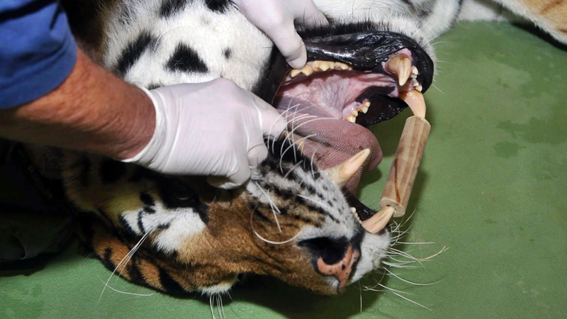 A Veszprémi Állatkert szibériai tigrise az utóbbi napokban kevesebbet evett, ezért volt szükség a beavatkozásra.