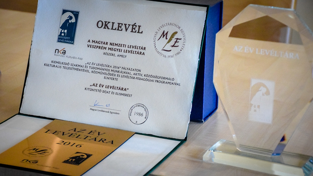 Az Év Levéltára Díjat 2016-ban a Magyar Nemzeti Levéltár Veszprém Megyei Levéltárának ítélte oda a Magyar Levéltárosok Egyesülete.