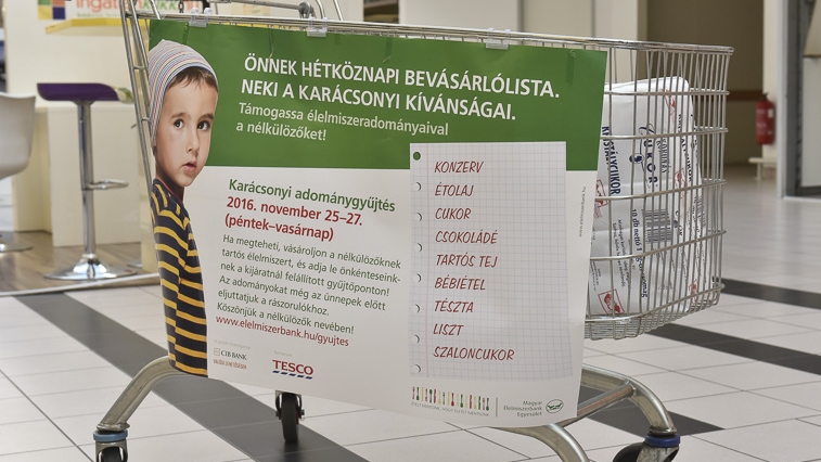 A Magyar Élelmiszerbank Egyesület november 25-27. között szervezett hagyományos karácsonyi tartósélelmiszer-gyűjtéséhez idén immár 9. alkalommal csatlakozott a Tesco.