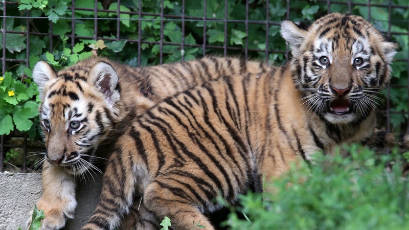 Megkezdődött a kistigrisek kiszoktatása a külső bemutatóhelyükre a Veszprémi Állatkertben.