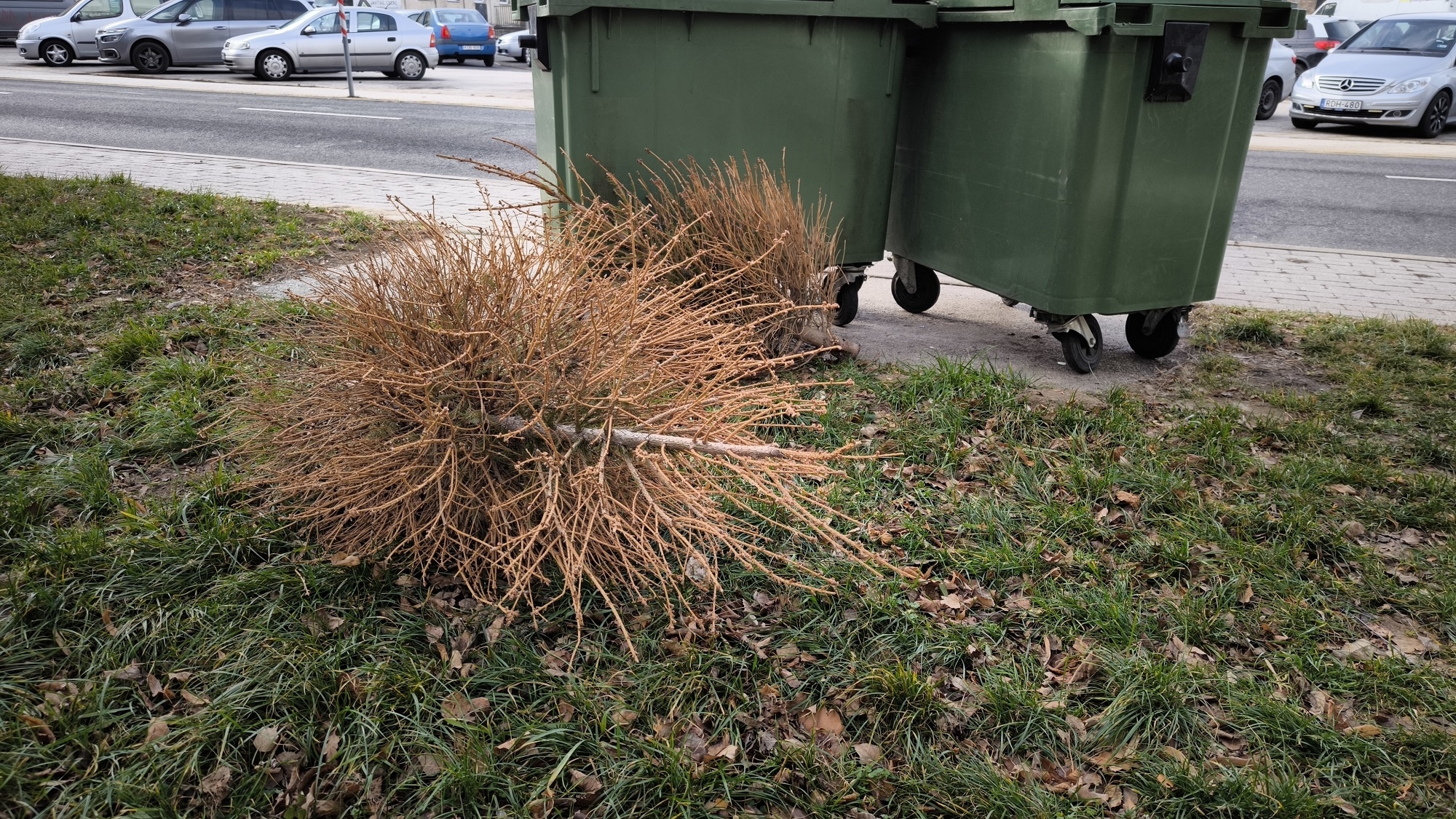 Ekkor szállítják el a fenyőfákat a konténerek mellől