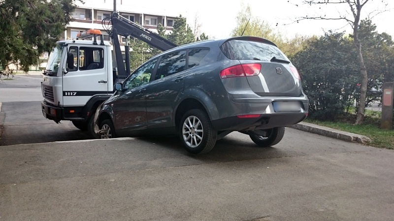 Fennakadt a Cserhát-lakótelep egyik lépcsőjén egy személyautó csütörtök délelőtt.