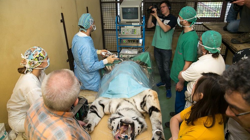 Szaporodásbiológiai vizsgálaton és beavatkozáson estek át a Veszprémi Állatkert szibériai tigrisei.