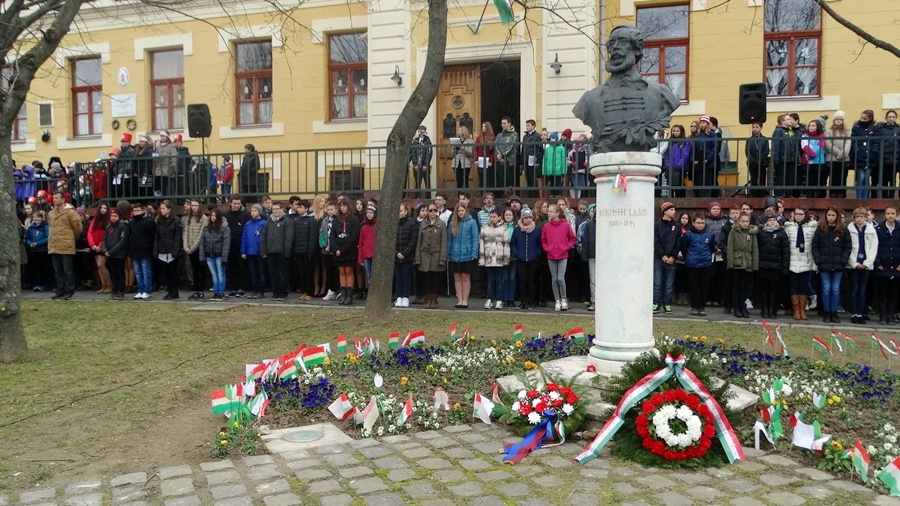Az 1848-as forradalom és szabadságharc 168. és Kossuth Lajos halálának 122. évfordulójára emlékeztek a Kossuth iskola diákjai pénteken délelőtt.
