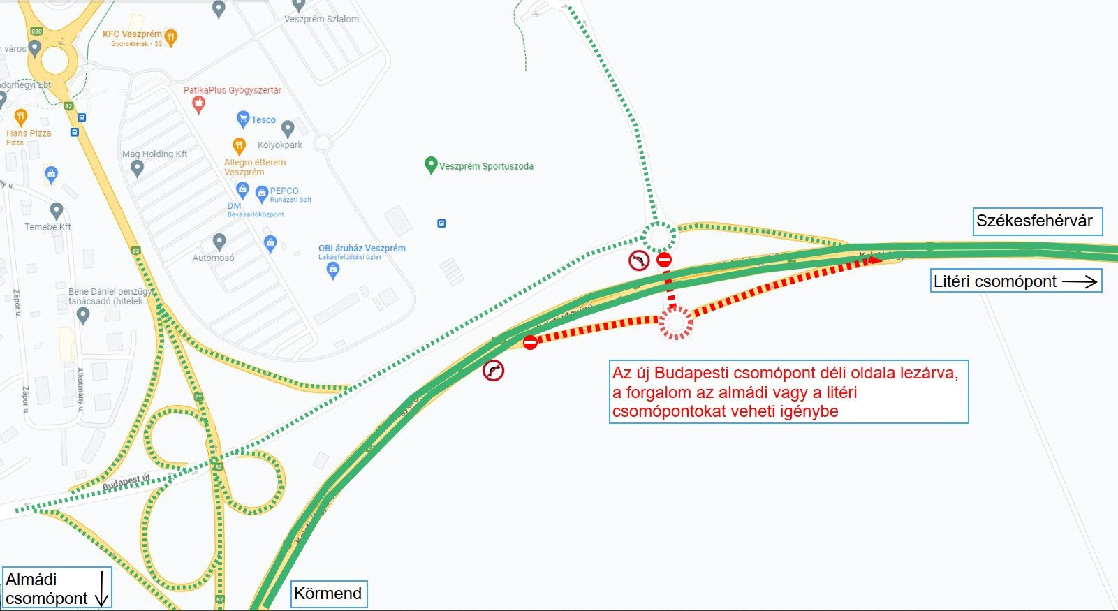 Ideiglenes forgalmi rend lép életbe Veszprém bevezető szakaszán