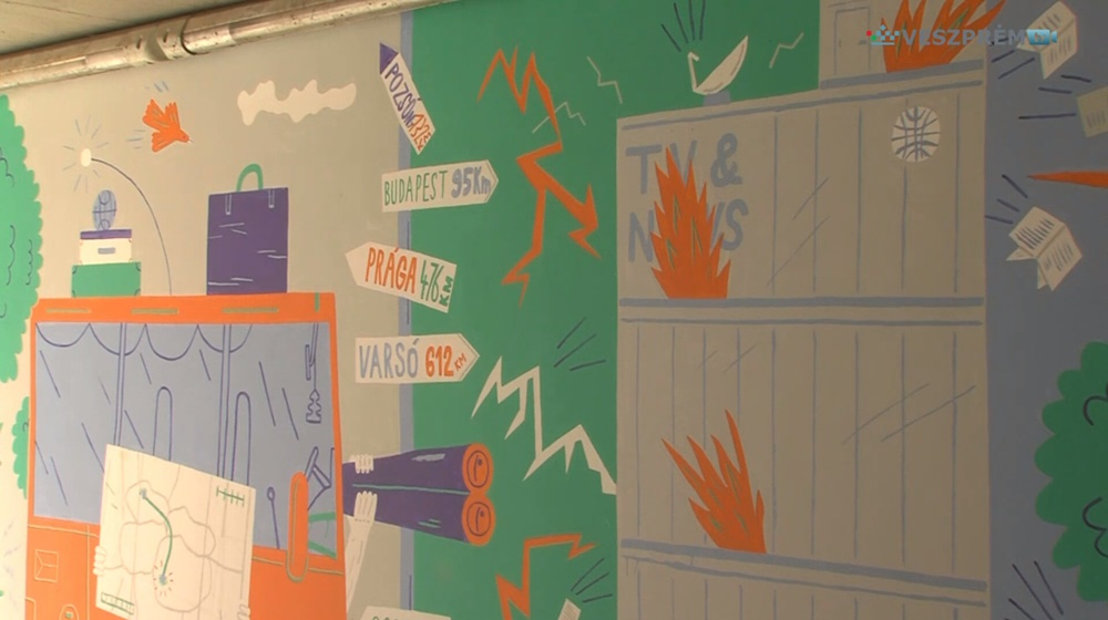 Újabb falfestménnyel gyarapodott a megyeszékhely. A Veszprém Aréna előtti aluljáró falára festett képet Jakub Bachorik cseh illusztrátor.