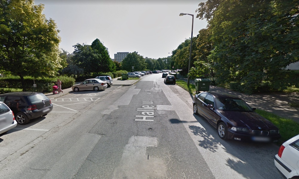 Halle utca 5. számú társasház előtti útszakaszon 53 db merőleges várakozóhelyet alakítanak ki.