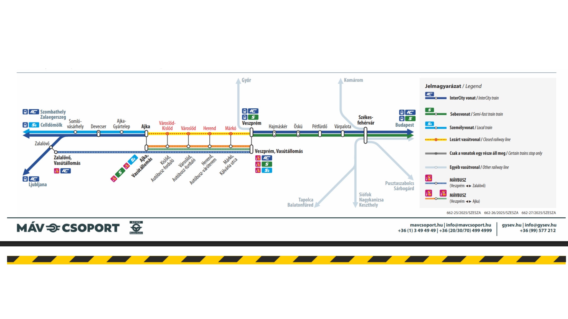 A MÁV azt is jelezte már tavasszal, hogy a bonyolult munkálatok miatt a helyreállítás várhatóan év végéig tart, addig a vonatpótló buszokkal biztosítják a közlekedést Veszprém és Ajka között. Most a munkálatok végéig érvényes vágányzári hirdetmény is megerősítette ezt.