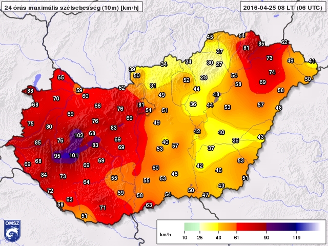 Az olyan erős északias áramlások esetén, mint amilyen a mostani szeles időt is okozta, az Északi-Kárpátok jelentős árnyékoló hatással bír a légmozgásra. Az Északi-középhegység vidékén és az Alföld legnagyobb részén így a szél erőssége még a viharos fokozatot sem érte el.
