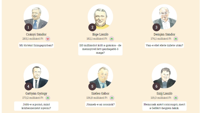 A Forbes idei listáján 283,1 milliárd forintjával Csányi Sándor stabilan őrzi első helyét.