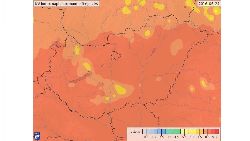 A figyelmeztetési értéket meghaladó, 8.9-es (extrém) UV-B sugárzás várható június 24-én, pénteken.
