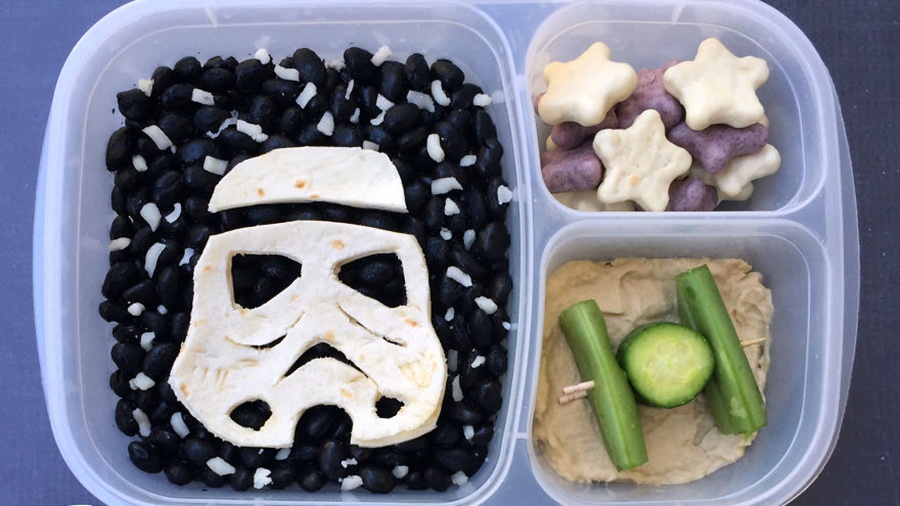 Rohamomsztagos tortilla, Csubakka szendvics, Leia hercegnő hamburger. R2D2 tojás.