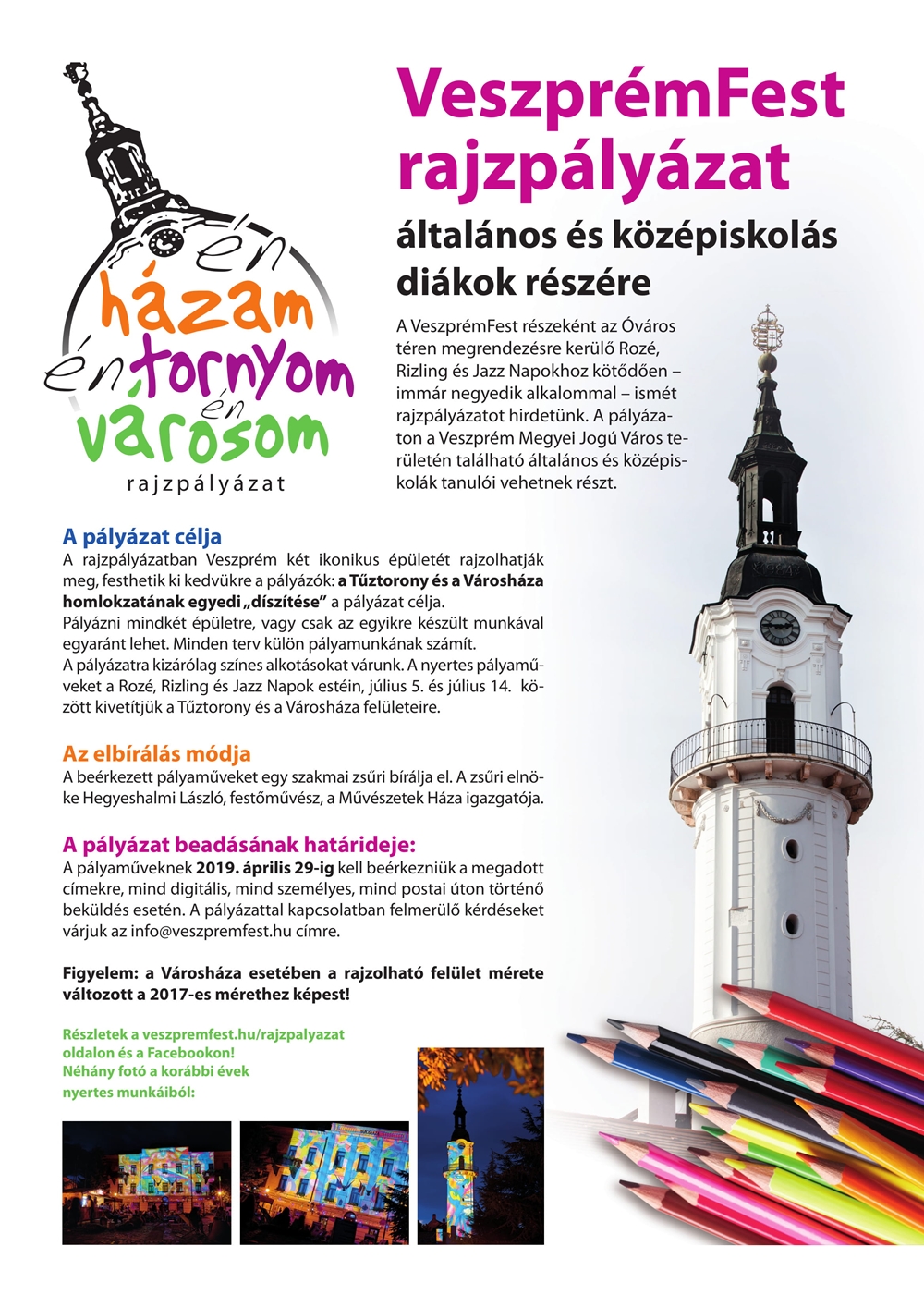 A rajzpályázatban Veszprém két ikonikus épületét rajzolhatják meg, festhetik ki kedvükre a pályázók: a pályázat célja a Tűztorony és a Városháza homlokzatának egyedi „díszítése”. A pályamunkák készülhetnek bármilyen hagyományos rajztechnikával, vagy akár digitálisan is.