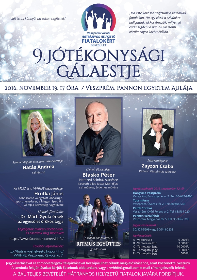 „Jót tenni könnyű, ha sokan segítenek” - ez lesz a mottója a Veszprém Városi Hátrányos Helyzetű Fiatalokért Egyesület idei jótékonysági gálaestjének.