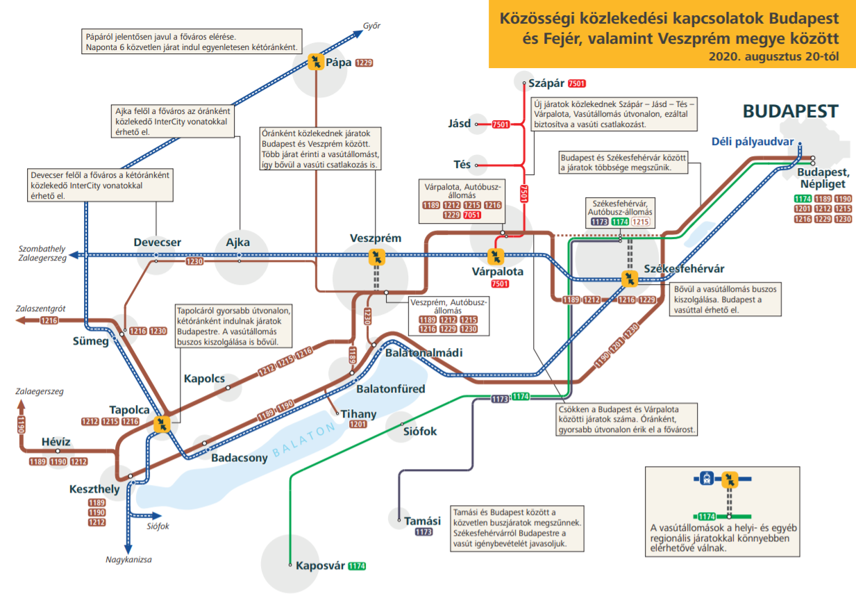 Augusztus 20-tól a Budapest és Székesfehérvár között közlekedő autóbuszjáratok többsége megszűnik, a vonatokhoz Székesfehérváron az eddigieknél több buszjárat csatlakozik: napközben óránként, csúcsidőben 30 percenként közlekednek autóbuszok a vasútállomás és az autóbusz-állomás között. A két város között továbbra is közlekedő autóbuszjáratokon pedig érvényesek a Budapest–Székesfehérvár viszonylatú vasúti bérletek - közölte honlapján a MÁV.