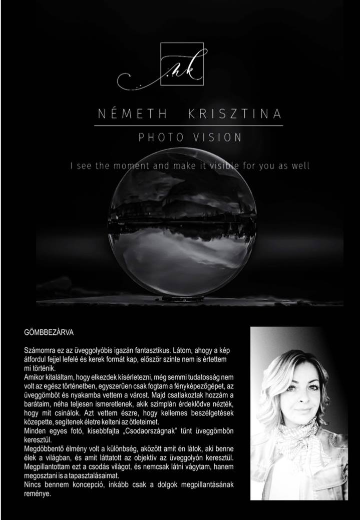 A kiállítás alkalmával Rostásy Szabó Mihály fotóművész köszöntőjét Németh Krisztina édesapja, Németh István olvasta fel. Kiváló női szemmel ábrázolja azt, amely mellett az utca embere csak egyszerűen elsétál észre sem véve azok szépségét - írta a művész. Úgy fogalmazott, az ő kezében a fényképezőgép nem egyszerűen munkaeszköz, hanem a vizuális világ bemutató eszköze. Csodákra képes egy kis üveggömbbel, bemutatva a fejre állított világot. Idő és fényképezés elválaszthatatlanok. Az exponálás egy pillanatot búcsúztat a jelenből, a gombnyomás pillanatával már a múlt lesz - vélekedett üzenetében a fotóművész.