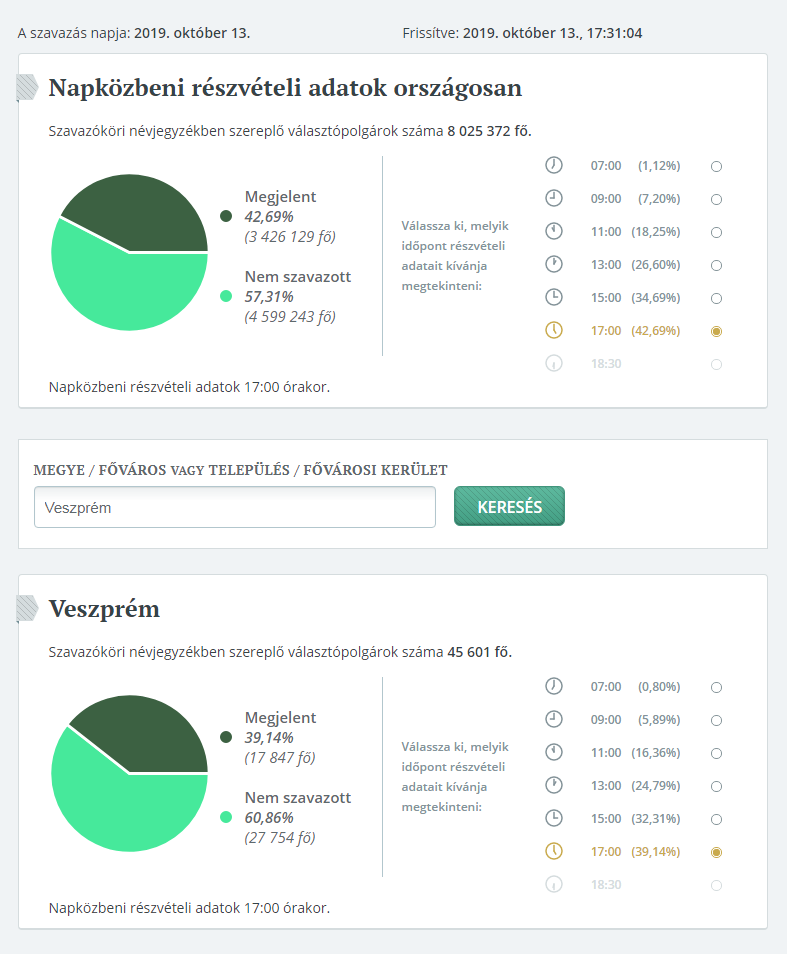 Közel 18 ezer veszprémi ment el szavazni 17 óráig