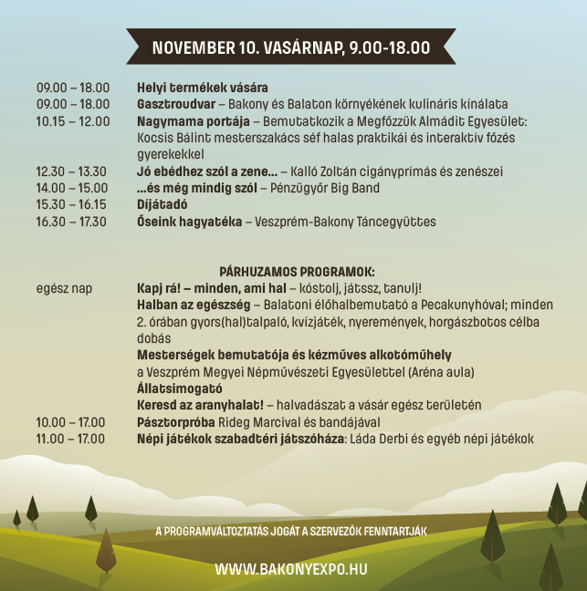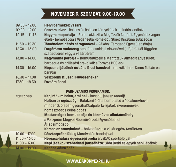 Sövényházi Balázs, a szervező Agrárgazdasági Kamara Veszprém megyei szervezetének elnöke elárulta, az idei évben a hal lesz a középpontban, ahogy eddig minden évben főszerephez jutott egy-egy Bakonyra jellemző alapanyag.
