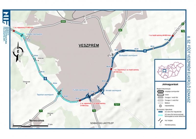 Nagy Róbert Attila, a beruházó NIF Zrt. vezérigazgatója elmondta: „A 8-as főút forgalma a kivitelezés ideje alatt is biztosított lesz két sávon, a meglévő és megépítendő Almádi és Füredi csomópontokban. A csomópontok zárását időben eltolva, a nyári időszakon kívülre ütemezik annak érdekében, hogy a munkálatok a lehető legkisebb mértékben zavarják a térségben közlekedőket.”