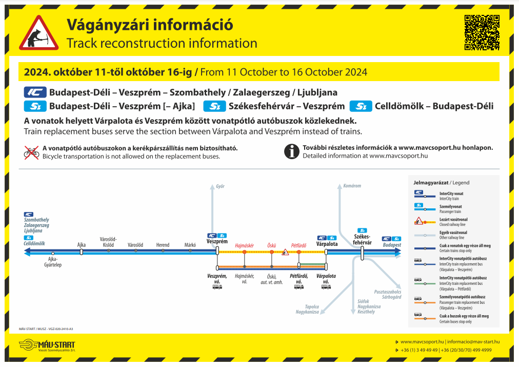 A Székesfehérvár — Szombathely vonalon október 11-től 16-ig a karbantartás miatt módosult a menetrend.